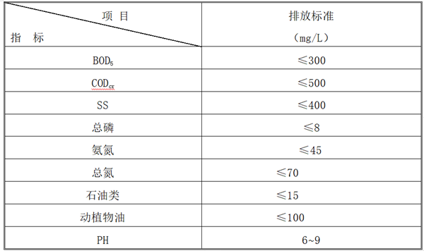 排放標準達到廣東省《水污染物排放限值》(DB44/26-2001)第二時段三級標準與《污水排入城鎮下水道水質標準》(GB/T31962-2015)B級標準的較嚴值。